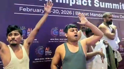 AI Summit 2026 Congress Protest: दिल्ली में चल रहे इंडिया AI समिट 2026 के दौरान यूथ कांग्रेस के कार्यकर्ताओं ने अर्द्धनग्न प्रदर्शन किया। जानकारी के मुताबिक, यूथ कांग्रेस के 8 से 10 कार्यकर्ता क्यूआर कोड स्कैन कर भारत मंडपम के अंदर पहुंच गए। अंदर जाते ही उन्होंने अपने कपड़े उतार दिए और मंच के पास पहुंचकर हंगामा करने लगे। कई कार्यकर्ताओं ने अपनी शर्ट और बनियान दोनों उतार दीं। इसी बीच, वहां मौजूद जनता ने कांग्रेसियों को दौड़ा-दौड़ाकर पीटा।