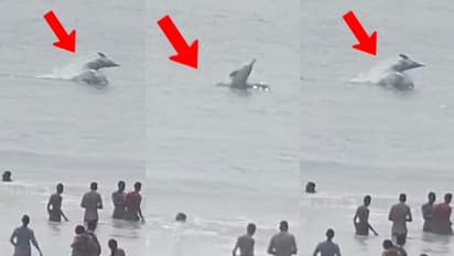 बीच पर डॉल्फ़िन देख पर्यटक भी हुए हैरान