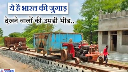 उदयपुर. अभी तक आपने पटरियों पर ट्रेन को दौड़ते देखा होगा, लेकिन राजस्थान में एक ऐसी जुगाड़ से ट्रैक्टर बनाया है कि वह रेल की पटरी पर सरपट दौड़ रहा है। जब लोगों को पता चला कि रेल लाइन पर कोई ट्रैक्टर चल रहा तो उसे देखने वालों की भीड़ लग गई।