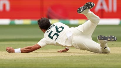 मुकाबले का पहला दिन पूरी तरह से गेंदबाजों के नाम रहा, जिसमें मिचेल स्टार्क ने कहर बरपाया। 58 रन देकर और 7 विकेट लेकर करियर का बेस्ट बॉलिंग फिगर बनाया। इसी में जैक क्राउली का अपनी ही गेंद पर एक शानदार डाइव लगाकर कैच भी पकड़ा।