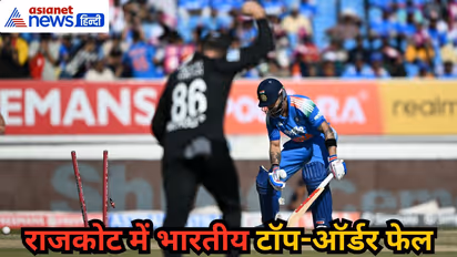 India vs New Zealand 2nd ODI: भारत और न्यूजीलैंड के बीच राजकोट में खेला जा रहा दूसरा मैच उल्टा घूम गया है। इस मुकाबले में टीम इंडिया की बल्लेबाजी संकट में फंस गई। टॉप-4 बल्लेबाजों को कीवी गेंदबाजों ने सस्ते में पवेलियन भेज दिया।