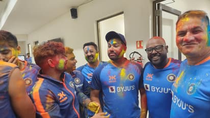 टीम इंडिया के खिलाड़ी सूर्यकुमार यादव ने रंग गुलाल लगाया और सेल्फी भी ली। बीसीसीआई ने एक वीडियो भी शेयर किया है जिसमें सभी खिलाड़ी हैप्पी होली बोल रहे हैं।