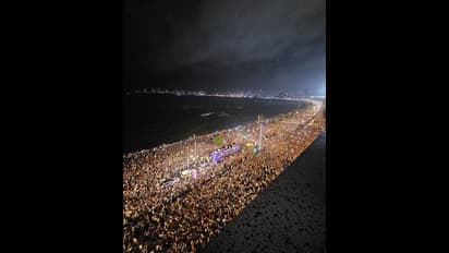भारतीय क्रिकेट टीम का टी20 वर्ल्ड कप जीतने के बाद गुरुवार को मरीन ड्राइव पर लाखों की संख्या में लोग उमड़े। आलम यह कि मरीन ड्राइव पर लोगों के पहुंचने से दक्षिण मुंबई पूरी तरह जाम हो गई। पश्चिमी रेलवे नेटवर्क पर चर्चगेट और मध्य रेलवे के विशाल मार्ग पर अंतिम स्टेशन छत्रपति शिवाजी महाराज टर्मिनस पर पहुंचने वाली ट्रेनों में भी फैंस की भीड़ थी।