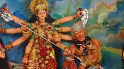 पंडाल में मां दुर्गा की पारंपरिक प्रतिमा के साथ शेर पर सवार होकर भाले से ट्रंप को वध करते हुए दिखाया गया है। ट्रंप का चेहरा पीड़ा और डर से उभरा हुआ है, और उनके हाथ में विषधर सांप लटका हुआ है। इस अनोखे दृश्य ने वहां आने वाले भक्तों और पर्यटकों का ध्यान खींचा और पंडाल चर्चा का केंद्र बन गया।