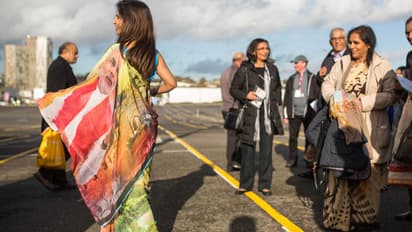 यह तस्वीर13 नवंबर, 2015 की है। अपनी आफिसियल यात्रा पर यूके के लीसेस्टर की जान्या दरबार ने वेम्बली स्टेडियम के बाहर मोदी के चित्र वाली साड़ी पहनकर विदेशा में उनके क्रेज को दिखाया था।