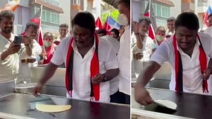 पांच राज्यों के साथ तमिलनाडु में होने जा रहे विधानसभा चुनाव में तरह-तरह के रंग देखने को मिल रहे हैं। ऐसा ही कुछ अलग नजारा देखने को मिला विरुगमवक्कम विधानसभा सीट पर। यहां से DMK प्रत्याशी प्रभाकर राजा जनसंपर्क के दौरान अचानक एक दुकान पर रुके और डोसा बनाने लगे।