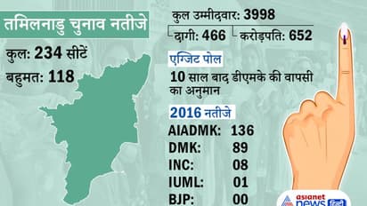 2016 के चुनाव में एआईएडीएमके ने जयललिता के नेतृत्व में 136 सीटें जीती थीं। वहीं डीएमके को 89, कांग्रेस को 8 और आईयूएमएल को एक सीट मिली थी। यहां भाजपा का खाता भी नहीं खुला था।