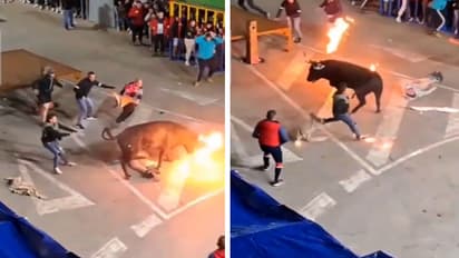 ट्रेंडिंग डेस्क. सोशल मीडिया पर एक बुल चेज का वीडियो वायरल हो रहा है। वायरल वीडियो में एक ग्रुप सांड के सींगों पर आग लगाकर बुल चेज (Bull Chase) का खेल खेलने की कोशिश करता है। पर सींगों पर आग लगते ही सांड भड़क जाता है और उसकी चपेट में एक शख्स आ जाता है। सांड जलते हुए अपने सींगों से युवक को कई बार पटकता है जिससे वो होश खो बैठता है। इस वीडियो को @explosionvidz नाम के ट्विटर हैंडल से शेयर किया गया, जिसे 56 लाख बार देखा जा चुका है। अंत में जैसे-तैसे लोग उस शख्स को सांड से दूर ले जाने में कामयाब रहते हैं पर वह जीवित बचा या नहीं इसकी कोई जानकारी उपलब्ध नहीं है। देखें वीडियो…