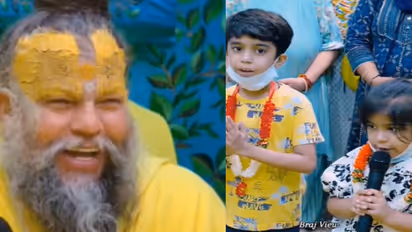बच्चे बहुत क्यूट होते हैं, वे कोई बात कहते हैं तो किसी का ध्यान उस और चला जाता है। वहीं बच्चे कुछ यूनिक पेश कर रहे हों तो दिलचस्पी बढ़ जाती है। सोशल मीडिया पर वायरल हो रहे एक क्लिप में देखा जा सकता है कि एक छोटी बच्ची और लड़का राधे-कृष्ण की कथा को रैप सॉन्ग के रूप में पेश कर रहे हैं। वहीं प्रेमानंद महाराज तो मुंह खोलकर उनकी कला को सुन रहे हैं, उसे महसूस कर रहे हैं।