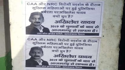 पोस्टर में अखिलेश यादव की तस्वीर लगी है, जिसमें उनके मुंह पर पट्टी लगाई गई है और लिखा गया है कि सीएए और एनआरसी विरोधी प्रदर्शन के दौरान मुस्लिम महिलाओें पर पुलिसिया बर्बरता पर अखिलेश यादव क्यों चुप हैं। अखिलेश यादव 2019 के चुनावों के बाद से आजमगढ़ से लापता हैं।