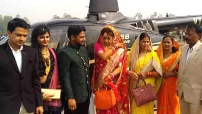 उन्नाव (Uttar Pradesh). यूपी के उन्नाव में एक दूल्हा अपने दादा की इच्छा को पूरा करने के लिए हेलीकॉप्टर से दुल्हन को लेकर अपने गांव पहुंचा। वहीं, दुल्हन के स्वागत के लिए आसपास के कई गांवों के लोग उमड़ पड़े थे। खेत में हेलीपैड बनाया गया था।