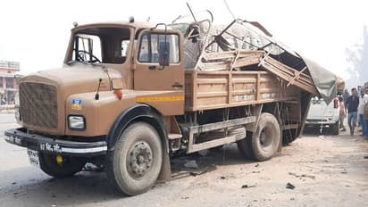 गलत दिशा से आ रहे ट्रक ने पीएसी गाड़ी में मारी टक्कर, एक जवान की मौत-4 की हालत गंभीर