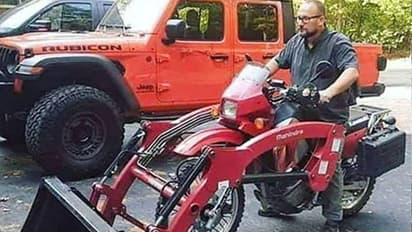 फोटो शेयर करते हुए आनंद महिंद्रा ने लिखा कि‘अमेरिका के एक दोस्त ने यह फोटो भेजी है। हमारे ‘जुगाड़' चैंपियन होने पर खतरा मंडरा रहा है। बाइक में महिंद्रा लोडर जोड़ा गया है। इसे देखना काफी दिलचस्प होगा।' इस फोटो पर लोगों की खूब प्रतिक्रियाएं आई हैं।