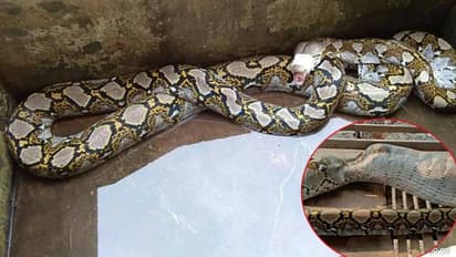 बकरे के बाड़े से पकड़ा गया विशालकाय अजगर, पेट देखते ही चीखने लगा चरवाहा