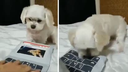 वायरल वीडियो:  मालिक की देखादेखी, जब डॉगी को चढ़ा लैपटॉप सीखने का शौक