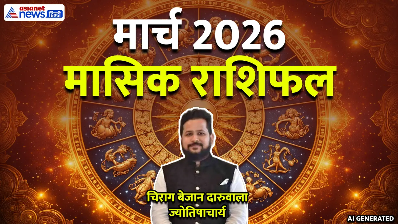 Monthly Rashifal 1-31 March 2026: मार्च 2026 में कईं बड़े ग्रह राशि बदलेंगे, जिनमें सूर्य, शुक्र आदि शामिल हैं। इस पूरे महीने में कुंभ राशि में मंगल और राहु के साथ होने से अंगारक योग बना रहेगा, जिसका चलते कोई बड़ी घटना-दुर्घटना होने का भय बना रहेगा। वहीं गुरु और बुध ग्रह वक्री से मार्गी हो जाएंगे। ग्रहों की ये स्थिति सभी 12 राशि के लोगों पर असर डालेगी। मार्च 2026 का महीना किस राशि के लिए कैसा रहेगा? जानें मासिक राशिफल से…