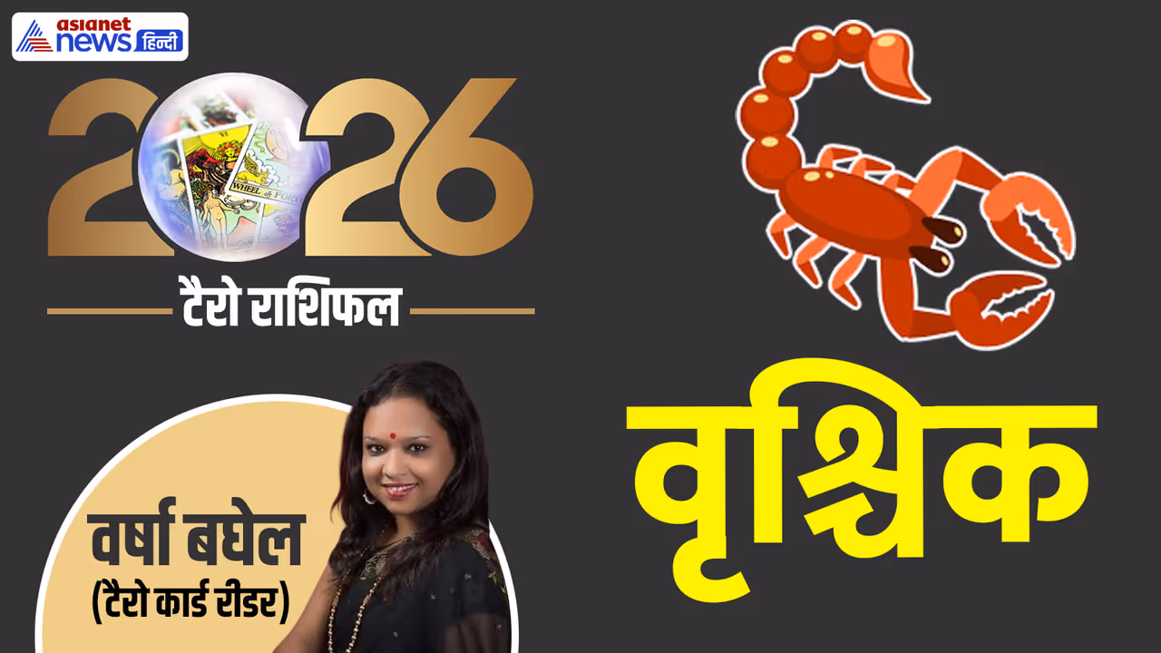 Scorpio Tarot Yearly Horoscope 2026: टैरो कार्डस के अनुसार जिन लोगों का जन्म 23 अक्टूबर से 21 नवंबर के बीच होता है, वे वृश्चिक राशि के होते हैं। फेमस टैरो कार्ड रीडर वर्षा बघेल से जानें साल 2026 वृश्चिक राशि वालों के लिए कैसा रहेगा।