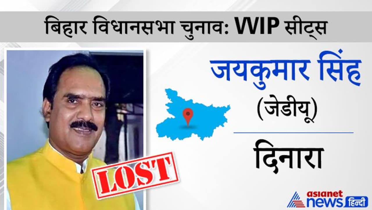 दिनारा से एलजेपी के जय कुमार सिंह की बड़ी हार-नीतीश कुमार के मंत्री जयकुमार सिंह को बड़ी हार का सामना करना पड़ा है। जय कुमार को 27 हजार से ज्यादा वोट मिले।