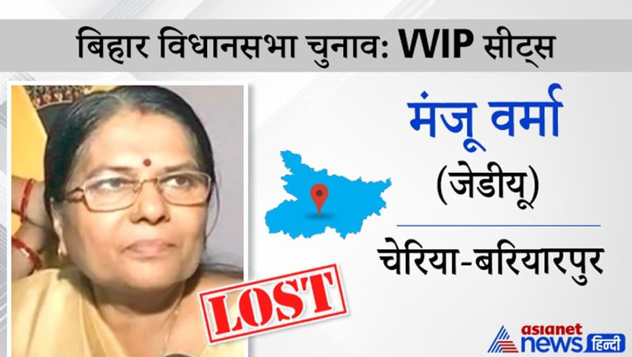 चेरिया बरियारपुर से जदयू प्रत्याशी कुमारी मंजू वर्मा की हारः यह सीट बेगूसराय जिले में आती है। 2015 में चेरिया बरियारपुर से जदयू की कुमारी मंजू वर्मा ने जीत हासिल की थी लेकिन इस बार वो अपनी सीट नहीं बचा पाईं। उन्हें आरजेडी के राजवंशी महतो ने हराया।