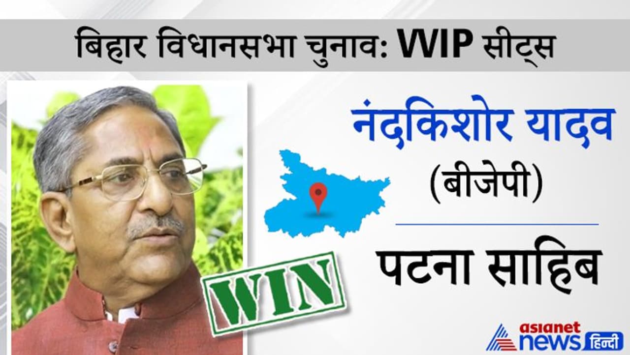 पटना साहिब से भाजपा के नंदकिशोर यादव की जीतः यह सीट भाजपा की सुरक्षित सीट मानी जाती है। यहां से भाजपा प्रत्याशी पथ निर्माण मंत्री नंद किशोर यादव को 82 हजार से ज्यादा वोट मिले। इन्होंने कांग्रेस ने प्रवीण सिंह को हराया।