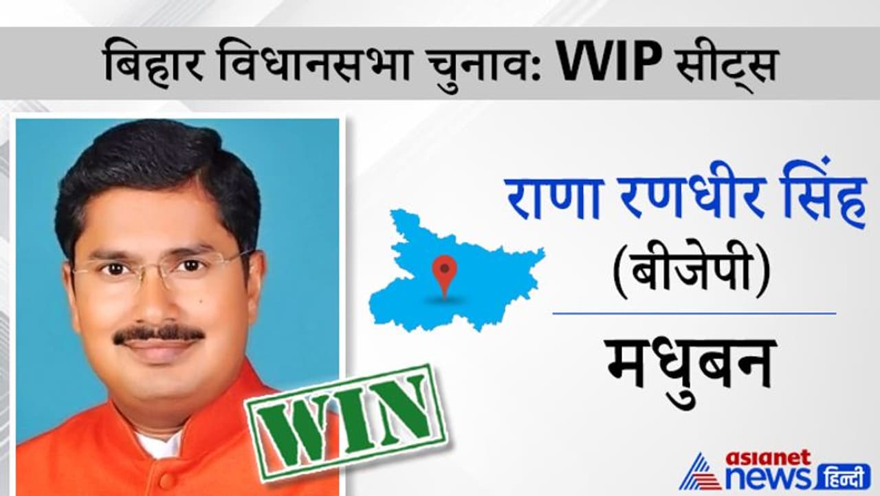 मधुबन से भाजपा के राणा रणधीर सिंह की जीत: मधुबन विधानसभा सीट बिहार के तिरहुत क्षेत्र का हिस्सा है। 2015 के चुनाव में इस सीट पर भाजपा के राणा रणधीर को दोबारा जीत मिली है। इनको 48 हजार से ज्यादा वोट मिले हैं।