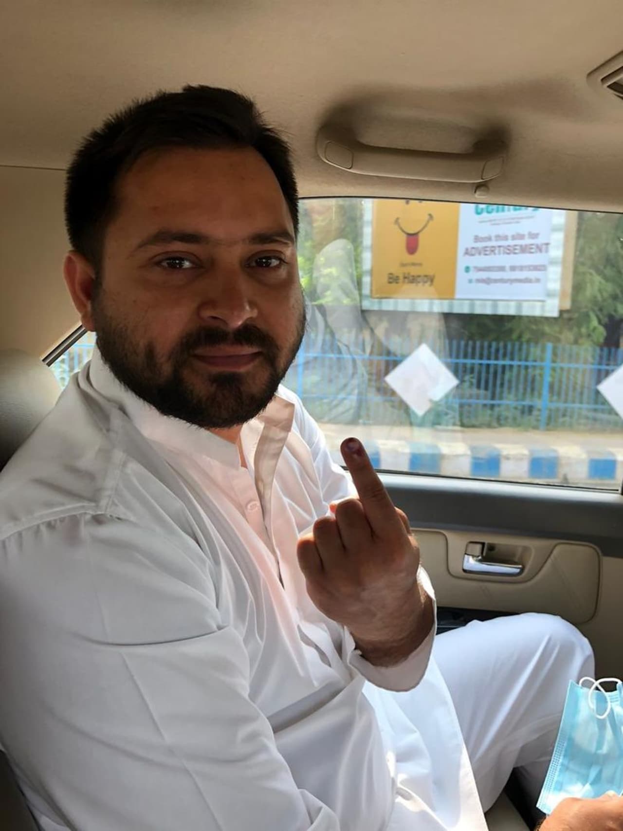 (महागठबंधन से सीएम फेस तेजस्वी यादव ने मतदान किया।)