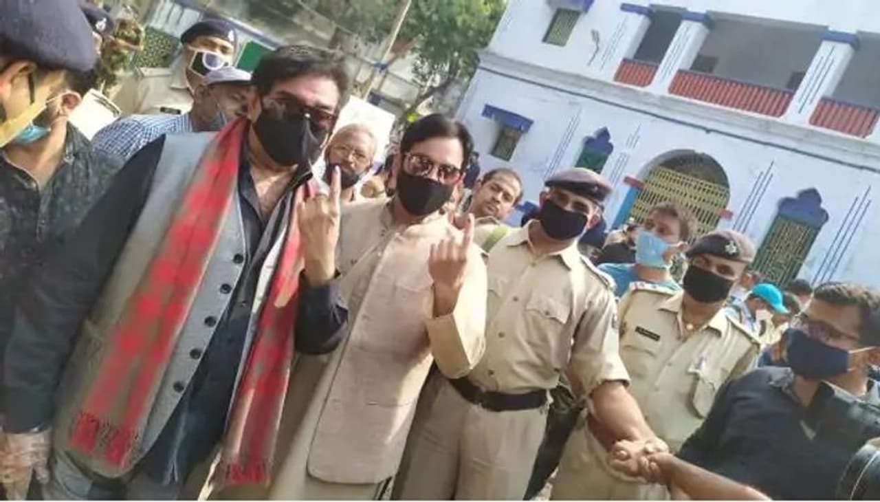 (गृहराज्यमंत्री नित्यानंद मतदान करने के बाद बूथ से बाहर आते।)