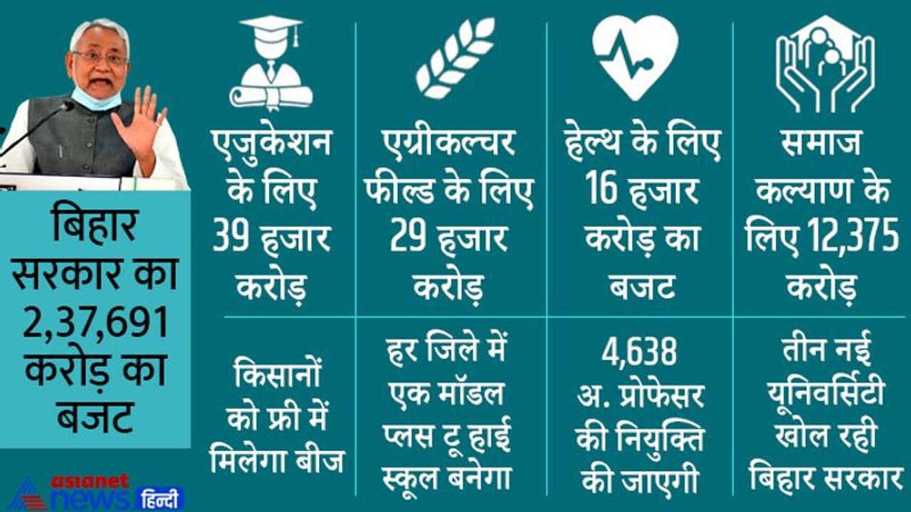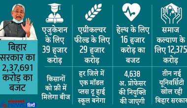 - Bihar Budget 2022: नीतीश सरकार का बिहार के विकास के लिए 6 सूत्रीय मॉडल, शिक्षा को सर्वाधिक 39 हजार करोड़ दिए