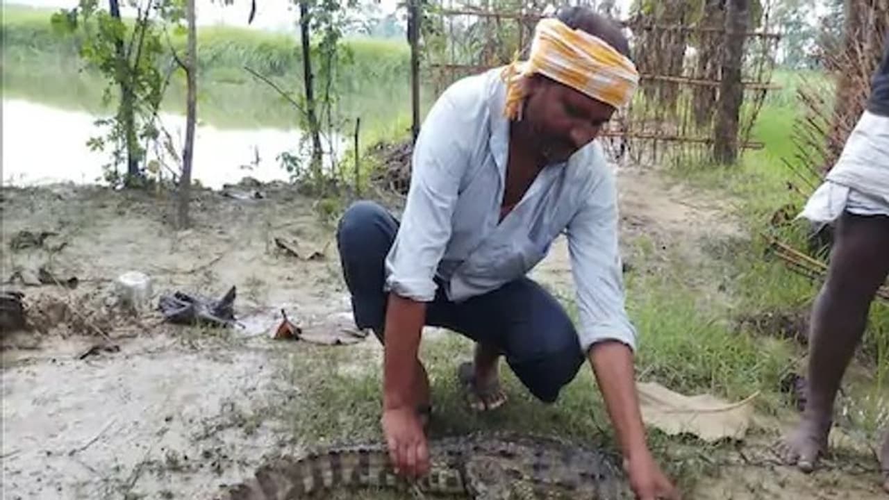 बगहा (bihar ) । बिहार में बाढ़ के पानी में बहकर मगरमच्छ रिहायशी क्षेत्रों में आने लगे हैं। आज फिर एक मगरमच्छ गांव तक पहुंच गया। कहा जा रहा है कि बगहा में पिपरा गांव के एक तालाब से मगरमच्छ में चला गया। जहां मछलियों का शिकार करने लगा। हालांकि सूचना पर पर्यावरण प्रेमी गजेंद्र यादव ने लोगों की मदद से पकड़ लिया। बता दें कि गजेन्द्र यादव को पर्यावरण के क्षेत्र में प्रदेश ही नहीं राष्ट्रीय स्तर पर भी कई सम्मान मिल चुका है।