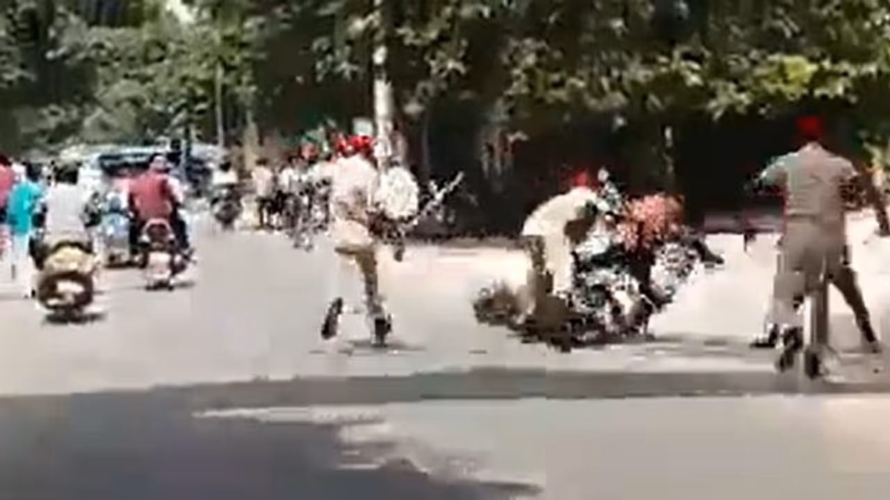 उसी वक्त सड़क पर मौजूद दूसरा जवान युवकों की ओर दौड़ता है और चलती स्कूटी से धक्का देकर उन्हें गिरा देता है। इस कोशिश में पुलिसकर्मी भी सड़क पर चारों खाने चित हो जाता है। आसपास मौजूद दूसरे जवान युवकों की ओर लपकते हैं। एक जवान युवकों को पीटने के लिए लाठी उठाता है। इस दौरान पुलिसकर्मी देखते हैं कि मौके पर मौजूद लोग घटना का वीडियो बना रहे हैं। वीडियो बनता देख पुलिस के जवान मौके से खिसक जाते हैं। सड़क पर पटके जाने से चोटिल हुए दोनों युवक खुद को संभालते हुए उठते हैं और अपने घर की ओर बढ़ जाते हैं।