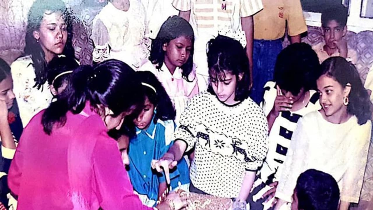 बॉलीवुड के सबसे फेमस घराने बहू ऐश्वर्या राय बच्चन (aishwarya rai bachchan) 47 साल की हो गई है। उनका जन्म 1 नवंबर, 1973 को मंगलौर में हुआ था। जन्मदिन के मौके पर ऐश्वर्या राय की कुछ रियर फोटोज सोशल मीडिया पर वायरल हो रही है, जिसमें उन्हें पहचान पाना मुश्किल हो रहा है। सालों पुरानी ऐश्वर्या की कुछ फोटोज वायरल हो रही है, जिसमें वे मासूम चेहरा, प्यारी सी मुस्कान और सिम्पल लुक में दिख रही हैं। ये फोटो उनके बचपन की है, जब वे किसी फ्रेंड की बर्थडे पार्टी में शामिल हुई थी। उनके बचपन की ये फोटो एक फैन पेज पर शेयर की गई है। इन फोटोज में वे अपनी ढेर सारी सहेलियों के साथ खड़ी हैं।