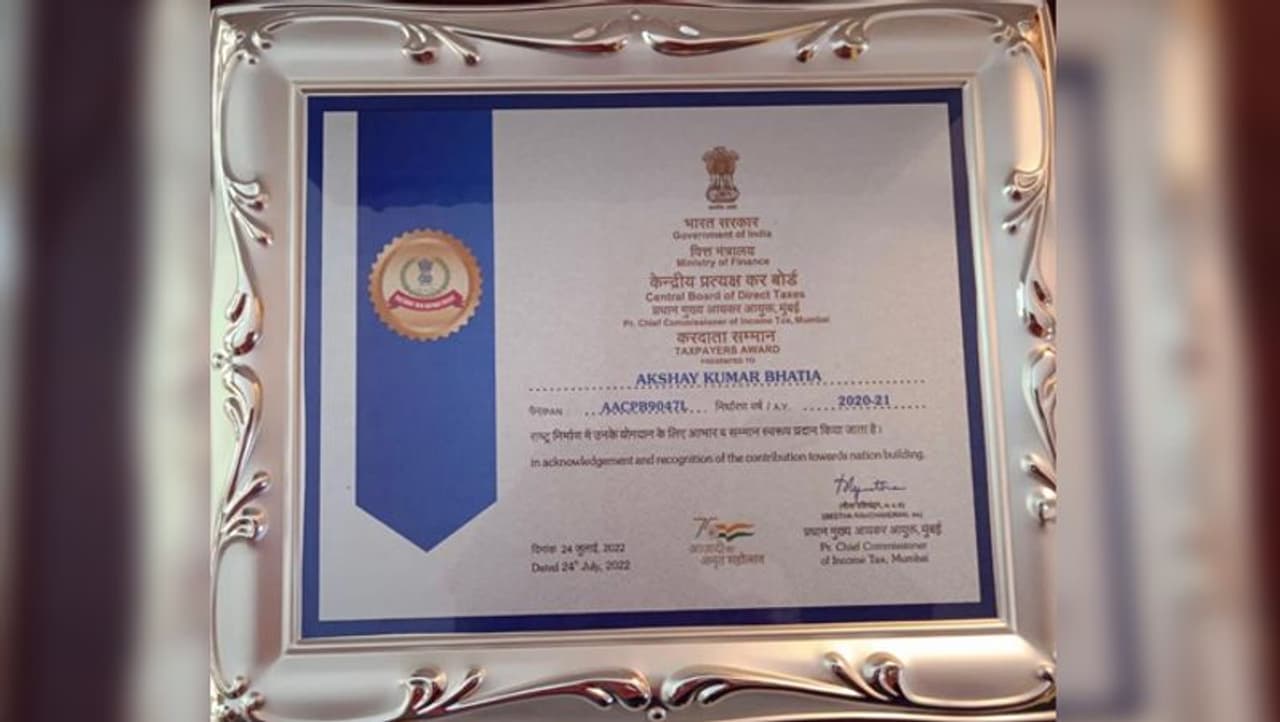 पिंकविला ने सम्मान पत्र की फोटो साझा करते हुए अपने आर्टिकल में लिखा है कि इनकम टैक्स डिपार्टमेंट की ओर से अक्षय कुमार का यह सम्मान रविवार सुबह हुआ है। हालांकि, अक्षय इन दिनों टीनू देसाई के साथ अपनी अपकमिंग फिल्म की शूटिंग के लिए यूके में हैं। इसलिए उनका सम्मान उनकी टीम द्वारा प्राप्त किया गया।