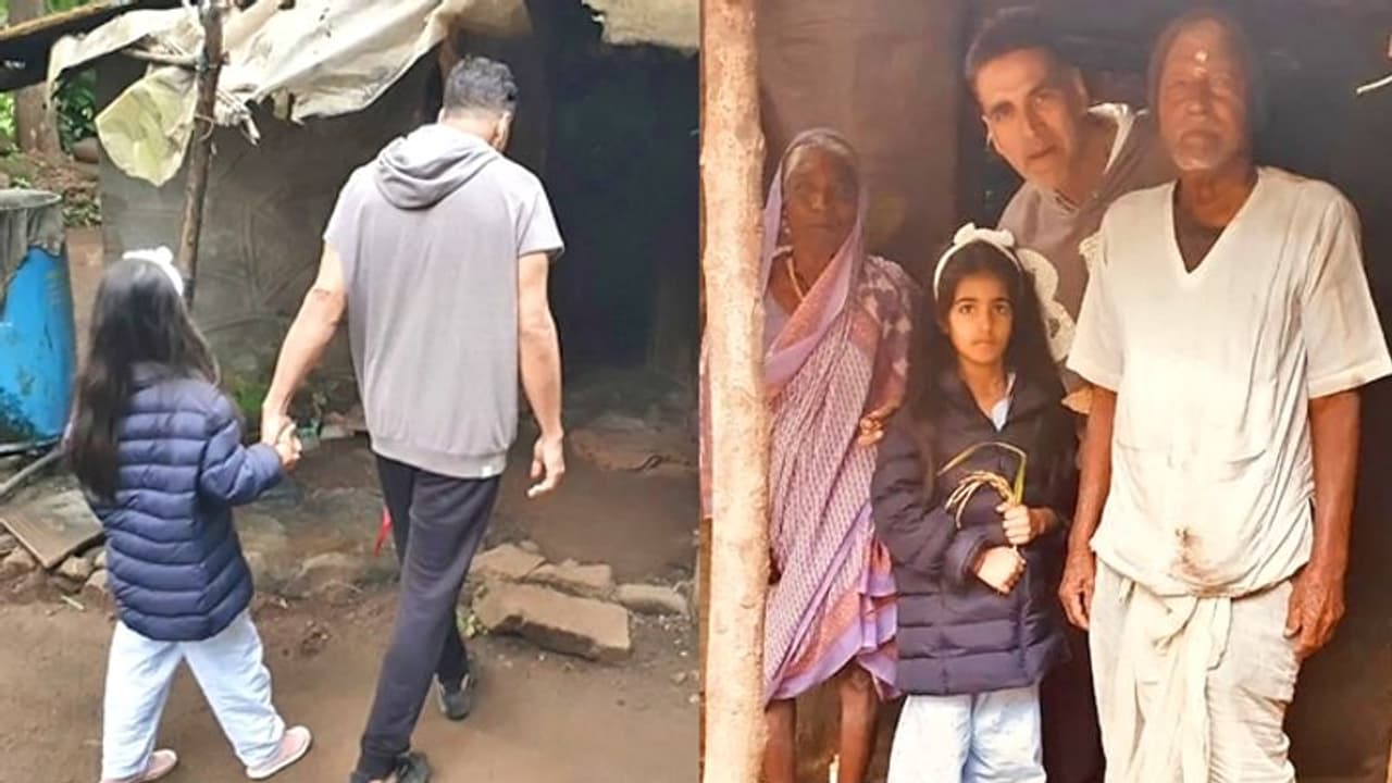 मुंबई। बॉलीवुड के खिलाड़ी अक्षय कुमार अक्सर अपनी दरियादिली के लिए जाने जाते हैं। गुरुवार को कुछ ऐसा ही वाकया सामने आया। दरअसल, अक्षय ने सोशल मीडिया पर मॉर्निंग वॉक से जुड़ा एक किस्सा फोटो के साथ शेयर किया है। फोटोज में अक्षय बेटी नितारा के साथ एक झोपड़ी में जाते हुए नजर आ रहे हैं। दरअसल अक्षय यहां पानी की तलाश में पहुंचे थे। बाद में अक्षय ने बुजुर्ग दंपती के साथ फोटो खिंचवाते हुए अपनी बात शेयर की।