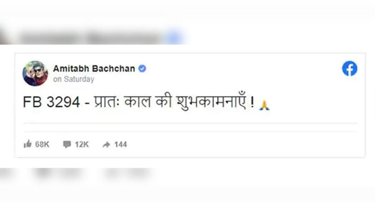 दरअसल, 79 साल बिग बी ने रविवार सुबह करीब 11: 30 बजे अपने फैन्स को सुबह की शुभकामनाएं देने के लिए पोस्ट शेयर की। इनमें उन्होंने लिखा था, "प्रातः काल की शुभकामनाएं।"