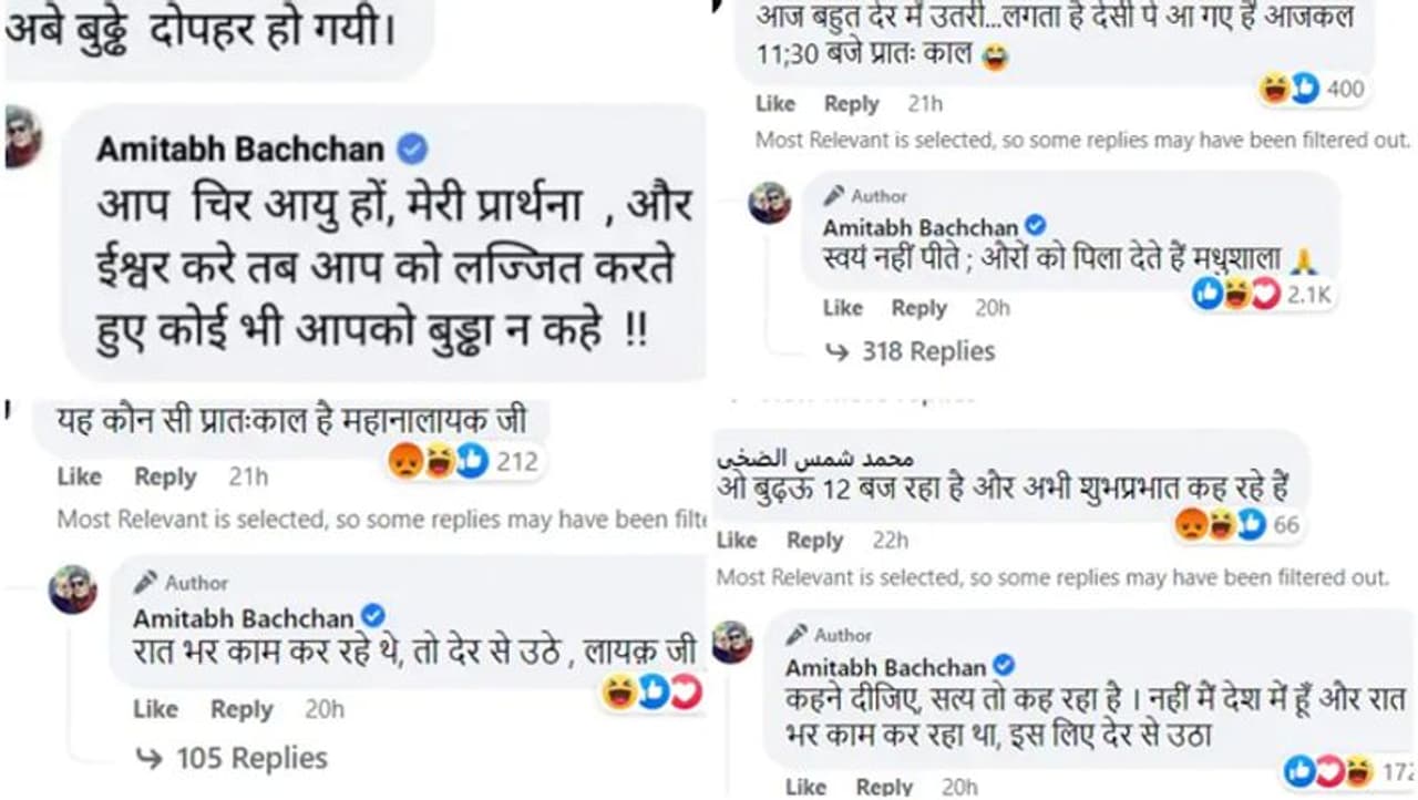 मसलन एक यूजर ने लिखा, "आपको नहीं लगता कि आपने बहुत जल्दी सुबह की शुभकामनाएं दे दीं।" बिग बी ने इस यूजर को जवाब देते हुए लिखा, "मैं आपके ताने का आभारी हूं। लेकिन मैं देर रात तक काम कर रहा था, शूटिंग सुबह पूरी हुई। देर से उठ पाया, इसलिए इतनी जल्दी शुभकामनाएं दे दी। अगर आपको तकलीफ हुई है तो मैं माफ़ी चाहता हूं।"