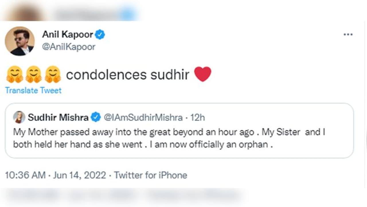 दो बार के नेशनल अवॉर्ड विजेता फिल्ममेकर सुधीर मिश्रा की मां के निधन पर अनिल कपूर की सोशल मीडिया पोस्ट देख लोग उन्हें जमकर ट्रोल कर रहे हैं।