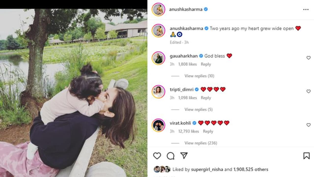 अनुष्का और वामिका की यह तस्वीर सोशल मीडिया पर वायरल हो रही है। इसे महज 3 घंटे के अंदर 19 लाख से ज्यादा लाइक्स मिले चुके हैं। फोटो पर कमेंट कर अनुष्का के कलीग्स और फ्रेंड्स वामिका को जन्मदिन की शुभकामनाएं दे रहे हैं। मसलन, एक्ट्रेस काजल अग्रवाल ने कमेंट बॉक्स में लिखा है, "वामिका को जन्मदिन की हार्दिक शुभकामनाएं। ढेर सारा प्यार।" गौहर खान ने लिखा है, "भगवान आशीर्वाद बनाए रखे।" इसी तरह एक्ट्रेस तृप्ति डिमरी, ईशा गुप्ता, अथिया शेट्टी, नीति मोहन, अनाइता श्रॉफ और धनश्री वर्मा समेत कई अन्य सेलेब्स ने भी वामिका को जन्मदिन की शुभकामनाएं दीं हैं।