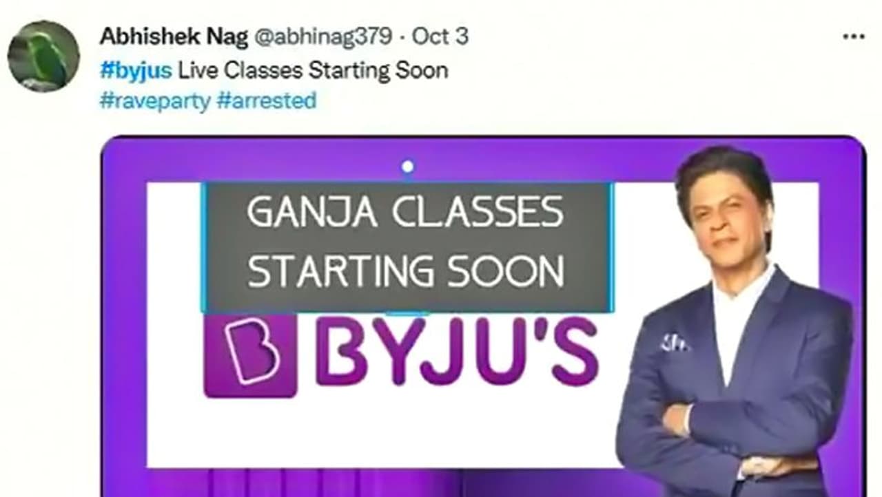 एक शख्स ने शाहरुख खान की फोटो के साथ बायजूस के एक पोस्टर को एडिट करते हुए लिखा- गांजा क्लासेस स्टार्टिंग सून।