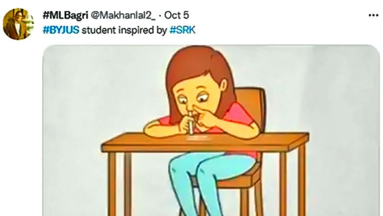 एक अन्य यूजर ने नशा करते हुए एक बच्चे की कार्टून फोटो शेयर करते हुए लिखा, शाहरुख से प्रेरित बायजूस के स्टूडेंट।