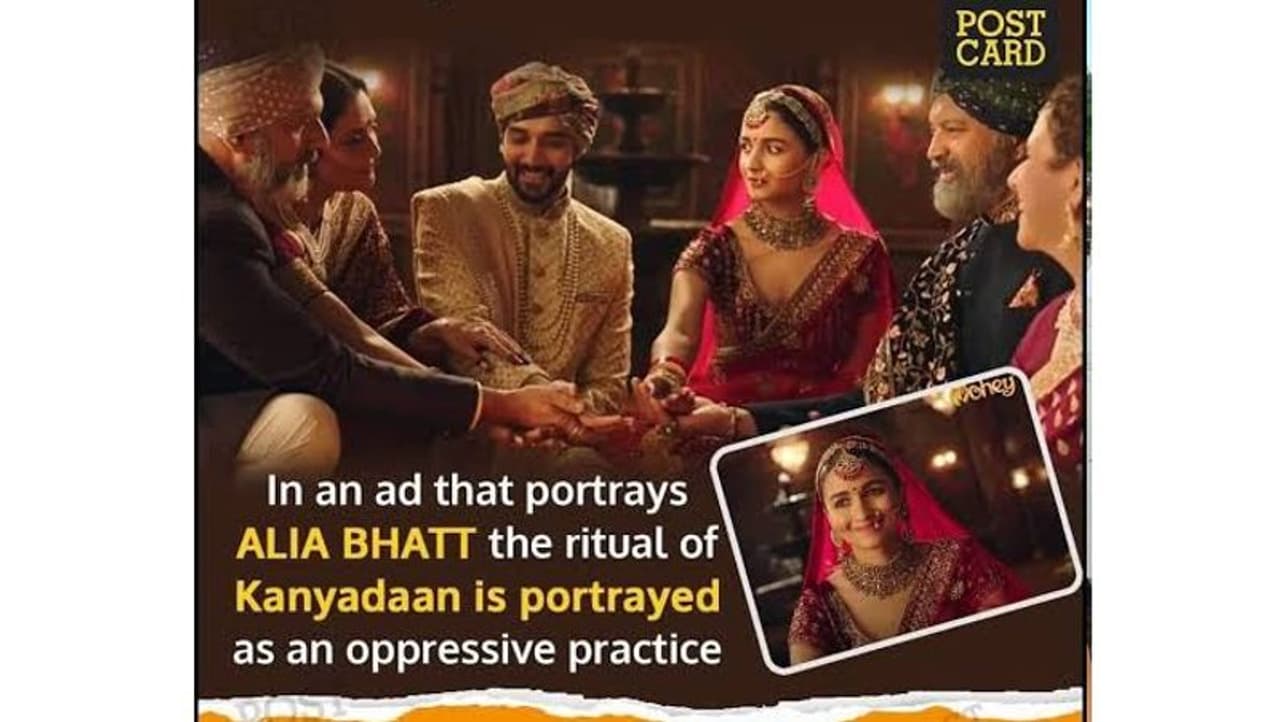 इसके अलावा आलिया भट्ट के एक पुराने विज्ञापन पर भी सवाल उठाए जा रहे हैं। जिसमें उन्होंने कन्यादान की जगह कन्यामान करने की बात कही थी। विज्ञापन में आलिया भट्ट को दुल्हन के रूप में पेश करते हुए कन्यादान की परंपरा पर सवाल उठाए गए थे।