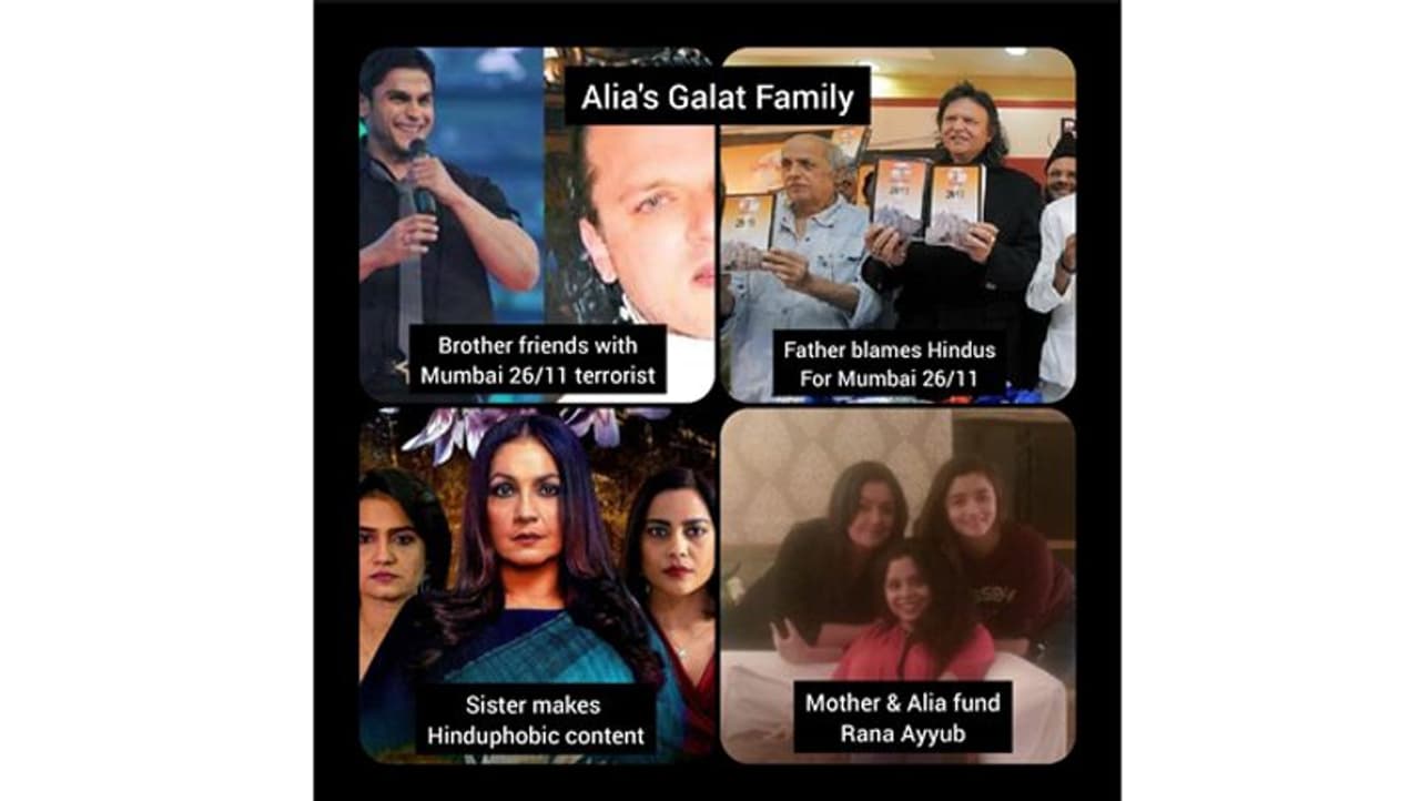 गौरतलब है कि आलिया भट्ट के भाई राहुल भट्ट ने 26/11 हमले के मास्टर माइंड डेविड हेडली की मदद की थी। मेकर्स इस मामले को फिर से उछालते हुए फिल्म का बॉयकॉट करने की मांग कर रहे हैं। इसके साथ ही आलिया के पिता महेश भट्ट और बहन पूजा भट्ट को भी विवाद में घसीटा गया है।