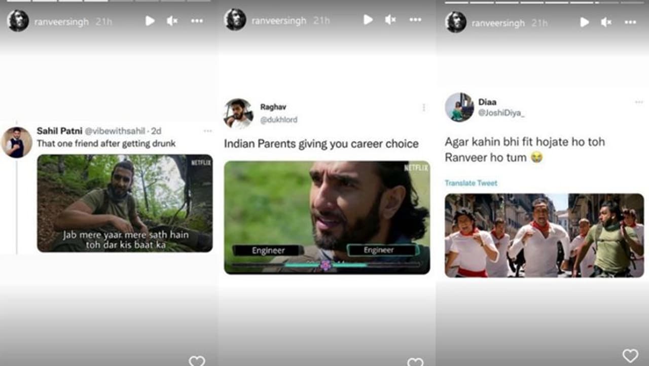 एंटरटेनमेंट डेस्क. बॉलीवुड के हाइएस्ट पेड एक्टर्स में से एक एक्टर रणवीर सिंह आज अपना 37वां जन्मदिन मना रहे हैं। अपने अनोखे अंदाज के लिए पहचाने जाने वाले रणवीर अक्सर अपनी हरकतों से अपने फैंस का दिल जीत लेते हैं। एक बार फिर उन्होंने कुछ ऐसा ही किया है। दरअसल, रणवीर सिंह जल्द ही नेटफ्लिक्स के शो 'मैन वर्सेस वाइल्ड' के सेलेब्रिटी एपिसोड में नजर आएंगे। हाल ही में शो से उनका टीजर सामने आया जिसके बाद से वे मीम वर्ल्ड में छाए हुए हैं। अब एक्टर ने खुद अपने सोशल मीडिया अकाउंट पर वो मीम्स शेयर किए जिसमें यूजर्स उनका मजाक उड़ा रहे थे। ऐसा करके रणवीर ने मीम क्रिएटर्स के क्रिएटिव माइंड की तारीफ भी की और अपने अनोखे अंदाज में अपने ट्रोलर्स का दिल भी जीत लिया। आप भी डालिए इन मीम्स पर एक नजर...