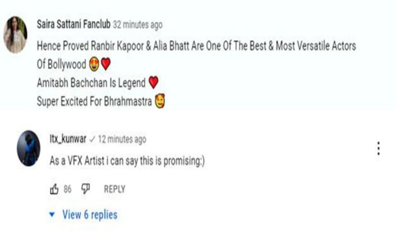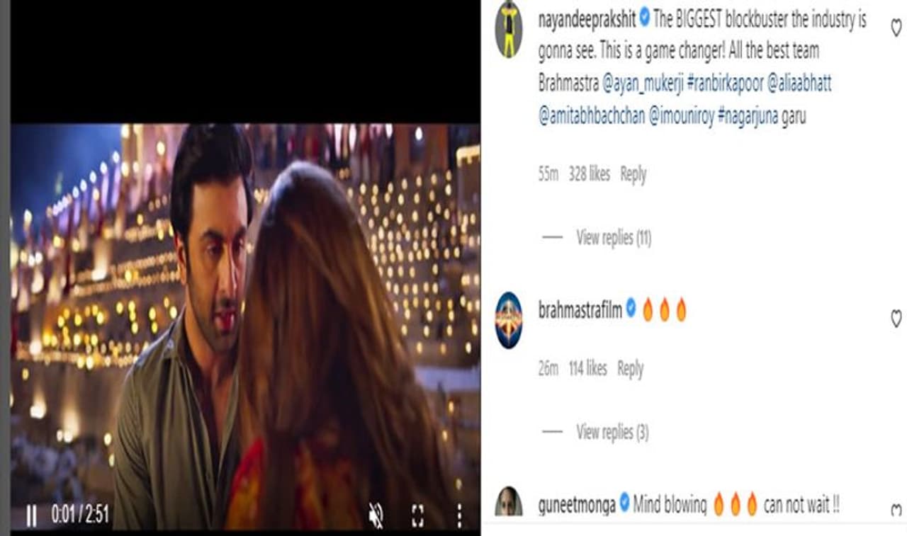 आलिय भट्ट, करण जौहर, अयान मुखर्जी, मौनी रॉय समेत मूवी से जुड़े लोगों ने अपने सोशल मीडिया अकाउंट पर ट्रेलर रिलीज किया है। रिएक्शन बॉक्स में सबने इस मूवी की तारीफ की है। कुछ तो रिलीज से पहले ही 'ब्रह्मास्त्र' को ब्लॉकबस्टर बता दिया है। आलिया की मां सोनी राजदान भी ट्रेलर देखकर प्रतिक्रिया दी हैं। उन्होंने मूवी को आश्चर्यजनक बताया है। आप भी कुछ लोगों का रिएक्शन यहां देखिए।