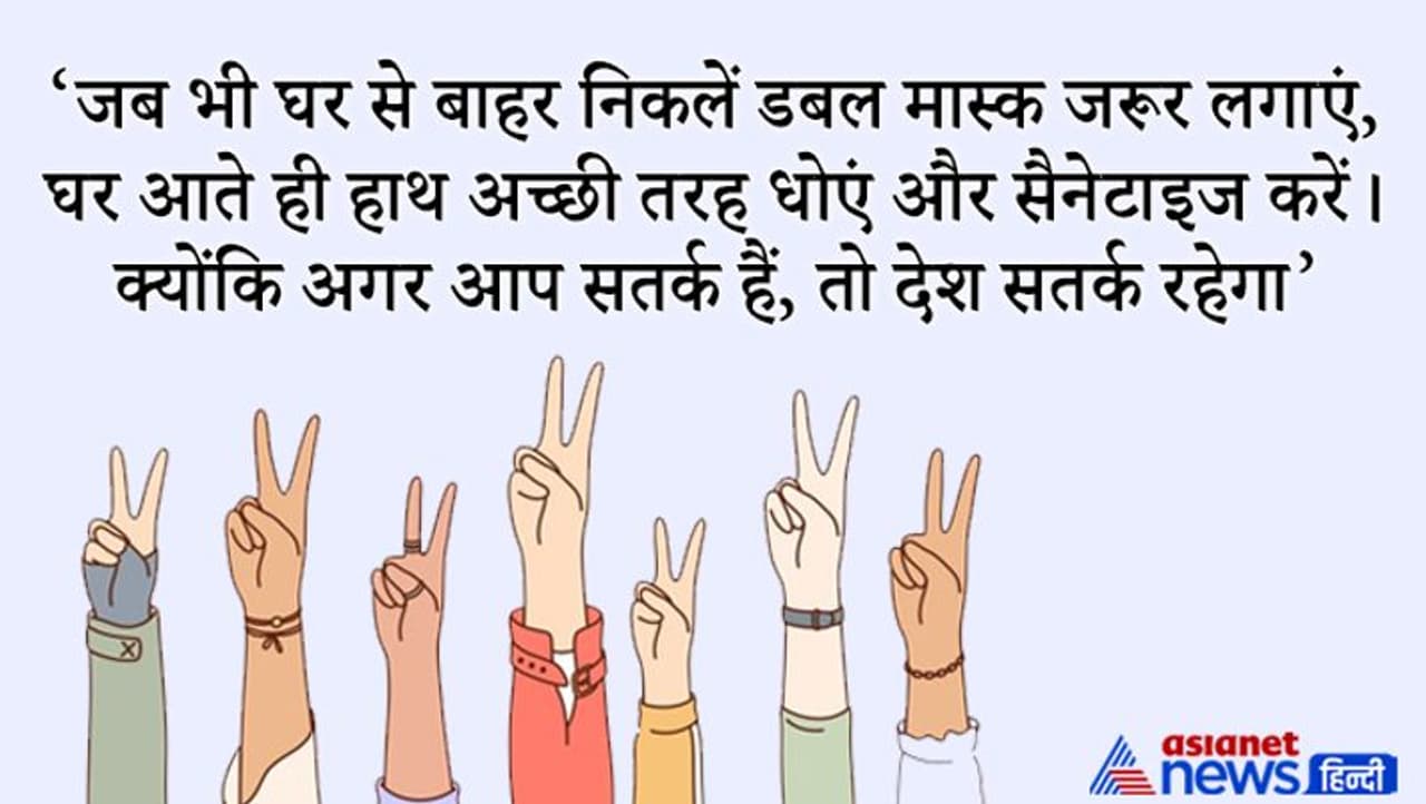 कोरोना को हल्के में बिल्कुल न लें। घर से बाहर जब भी निकलें तो डबल मास्क लगाएं। बाहर से आने के बाद हाथ अच्छी तरह धोएं और सैनेटाइज करें। क्योंकि अगर आप सतर्क हैं तो देश सतर्क है। हमें कोरोना से लड़ने के साथ ही उसे समझना होगा।
