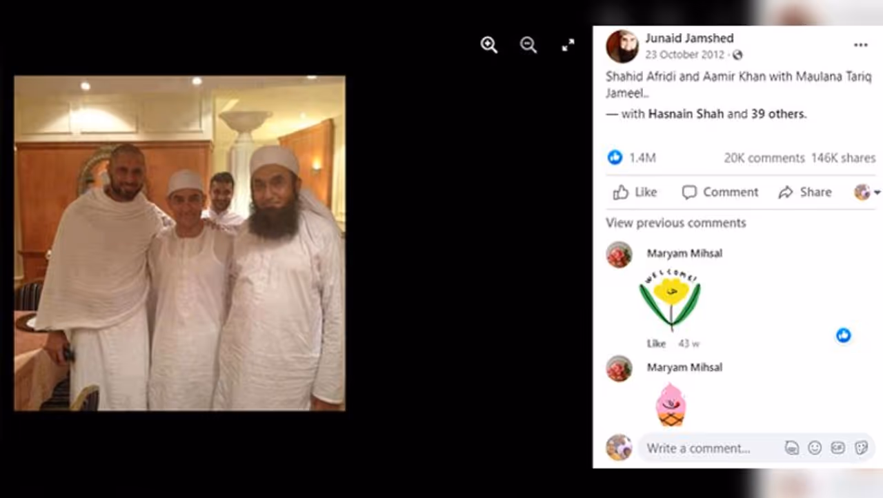 एक अन्य पाकिस्तानी न्यूज वेबसाइट ने अपनी रिपोर्ट में लिखा था कि जिस वक्त आमिर खान अपनी मां जीनत हुसैन के साथ मक्का गए थे, उस वक्त वहां पाकिस्तानी म्यूजिक बैंड विटाल साइन के सदस्य जुनैद जमशेद भी परफॉर्म कर रहे थे। जुनैद ने अपने फेसबुक अकाउंट से आमिर, अफरीदी और मौलाना की तस्वीर साझा की थी। उन्होंने भी इसके कैप्शन में तीनों की मुलाक़ात का जिक्र किया था। 2016 में एक प्लेन क्रैश में जुनैद की मौत हो गई।