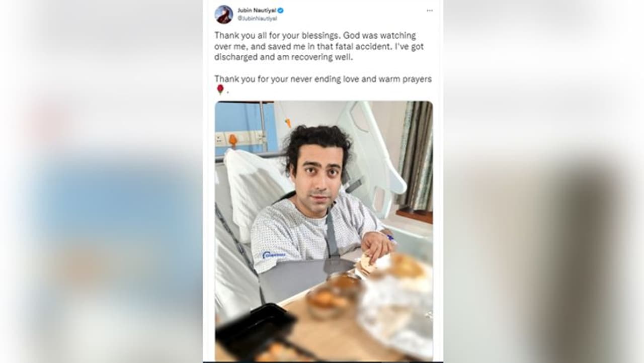 शुक्रवार देर रात जुबिन नौटियाल ने सोशल मीडिया पर अस्पताल से अपनी एक तस्वीर जारी की, जिसमें वे बेड पर बैठकर खाना खाते नजर आ रहे हैं। उनके दाहिने हाथ पर स्लिंग सपोर्ट दिखाई दे रहा है। सिंगर ने इस तस्वीर को कैप्शन देते हुए लिखा है, "आप सभी की दुआओं के लिए शुक्रिया। भगवान मुझे देख रहा था और उसने मुझे इस घातक दुर्घटना से बचा लिया।मुझे अस्पताल से छुट्टी मिल गई है और मैं अच्छे से रिकवर हो रहा हूं। आप सभी के कभी न ख़त्म होने वाले प्यार और प्रार्थनाओं के लिए तहे दिल से शुक्रिया।"
