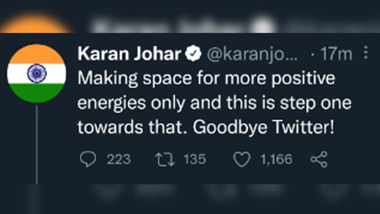 करन जौहर धर्मा प्रोडक्शन के मालिक हैं और वे अपनी फिल्मों के एलान से लेकर उनका प्रमोशन तक, सब कुछ ट्विटर और इंस्टाग्राम के माध्यम से ही करते थे। ऐसे में अचानक उनका ट्विटर से मोह भंग होना सबके लिए हैरत का विषय बना हुआ है।