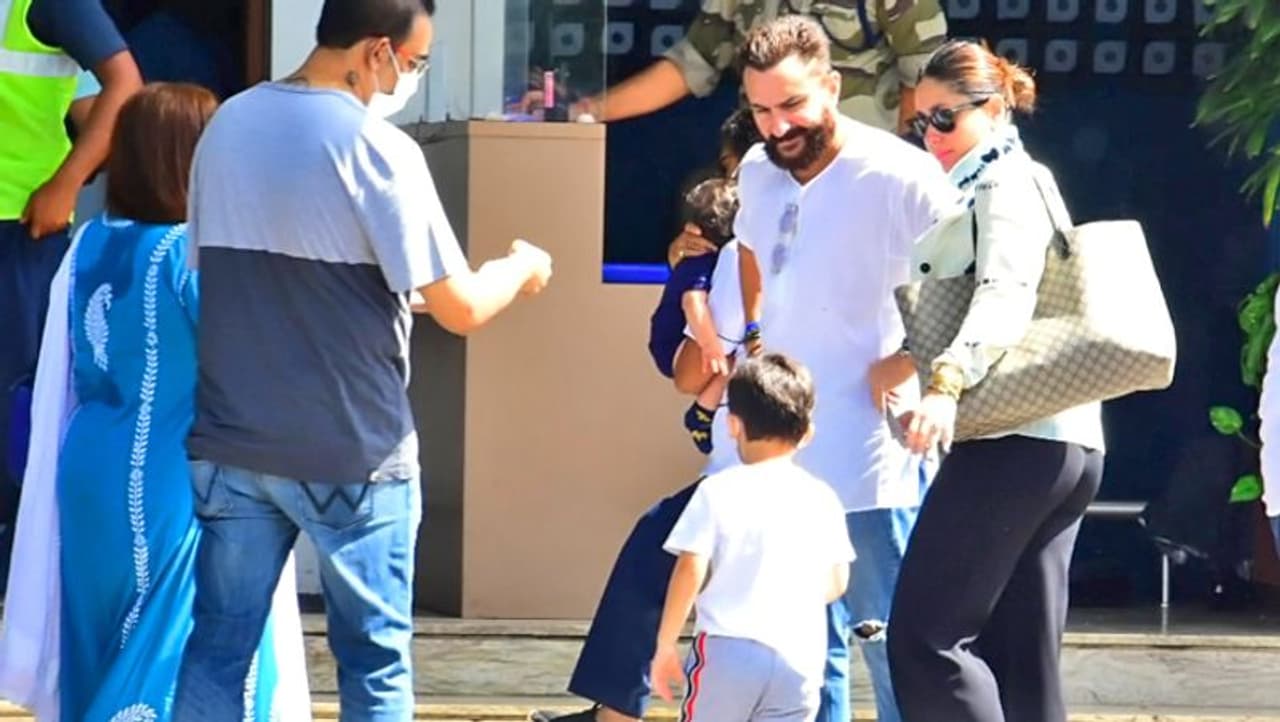 मुंबई। करीना कपूर (Kareena Kapoor) शनिवार को बेटे जहांगीर, तैमूर और पति सैफ अली खान (Saif Ali Khan) के साथ कलीना एयरपोर्ट के बाहर स्पॉट हुईं। इस दौरान करीना ने ब्लैक पैंट और व्हाइट शर्ट पहन रखी थी। इसके साथ ही उन्होंने ब्लैक गॉगल लगाया था। वहीं, सैफ अली खान जींस और कुर्ते में नजर आए। एयरपोर्ट पर तैमूर इधर-उधर चहलकदमी कर रहे थे, जिस पर करीना ने उन्हें समझाया। वहीं करीना का छोटा बेटा जहांगीर नैनी की गोद में सोता नजर आया। बता दें कि करीना फैमिली के साथ कहीं बाहर गई हैं।