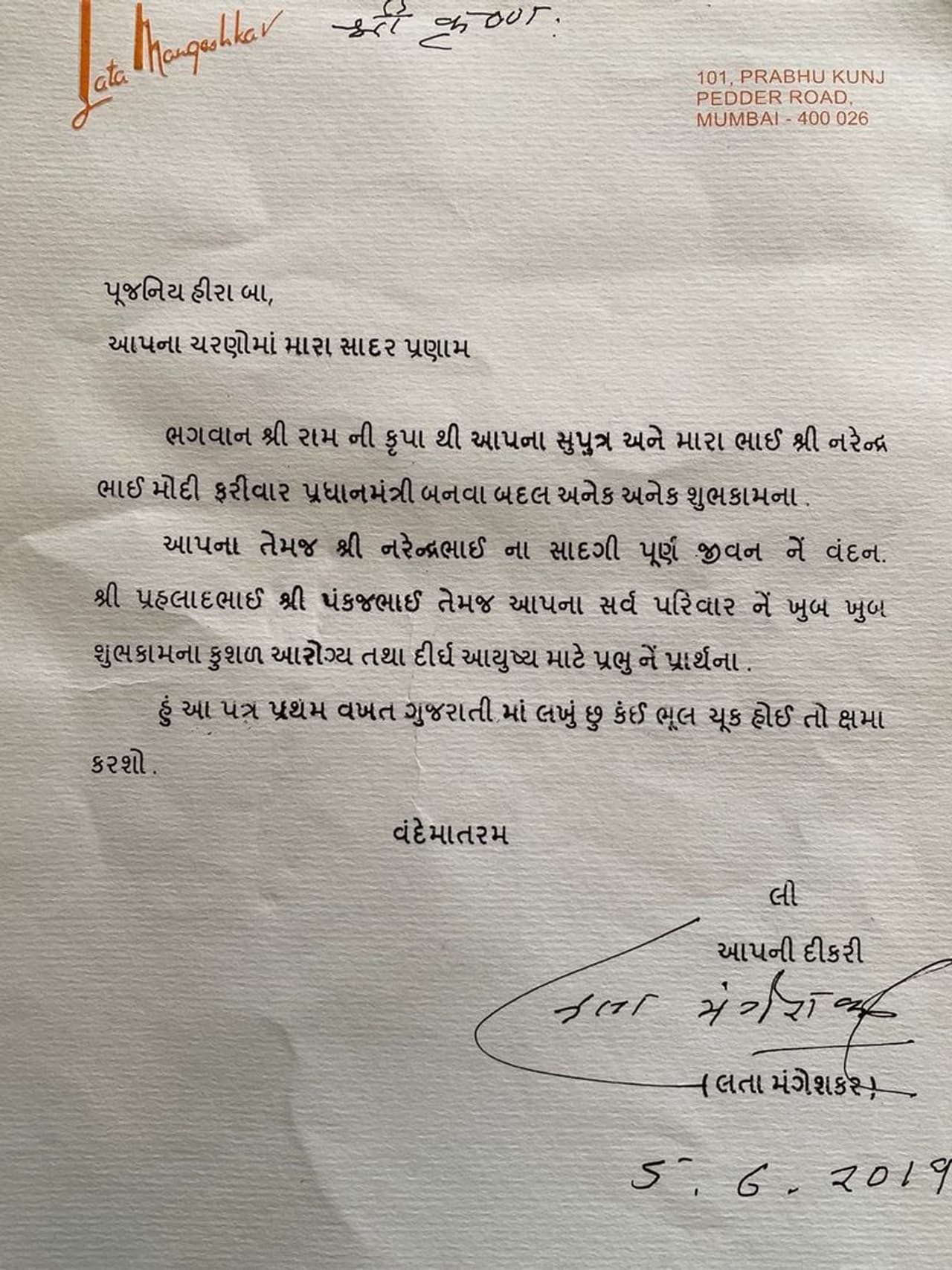 लता जी ने जो लेटर पीएम मोदी को मां को भेजा था, उसमें लिखा था कि