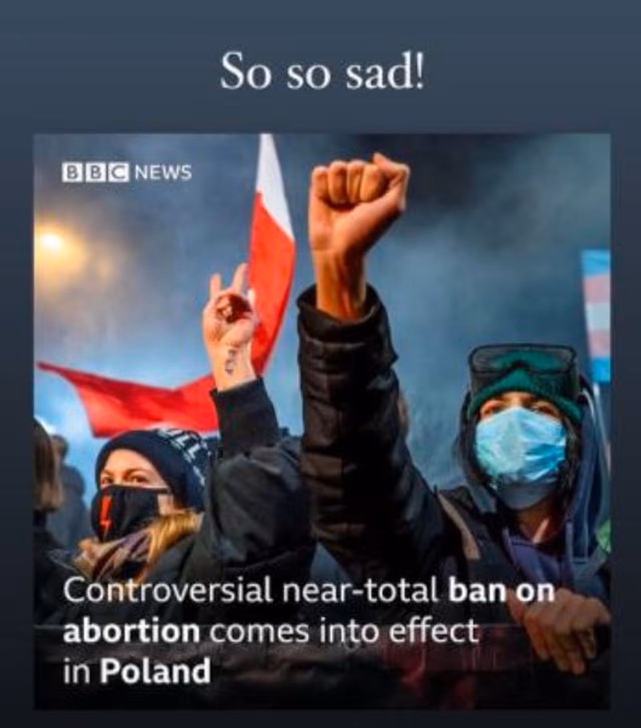 दरअसल, बुधवार को ही पोलैंड में कोर्ट ने एक फैसले में देश में अबॉर्शन पर पूरी तरह से रोक का आदेश दिया है। पोलैंड की एक अदालत ने अपने फैसले में कहा है कि ''अजन्मा बच्चा' भी मनुष्य है। इसलिए, उसे भी पोलैंड के संविधान के तहत संरक्षण मिलना चाहिए, जो जीवन के अधिकार की बात करता है।'